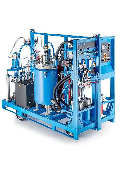 For use in Zone 1 explosion-proof areas, the unit is equipped with a forklift frame with mounting kit for a cart, directly heated pressure vessels as well as pneumatic agitators, pneumatic level monitoring by means of float switches and pneumatic monitoring of the contact pressure gauge.